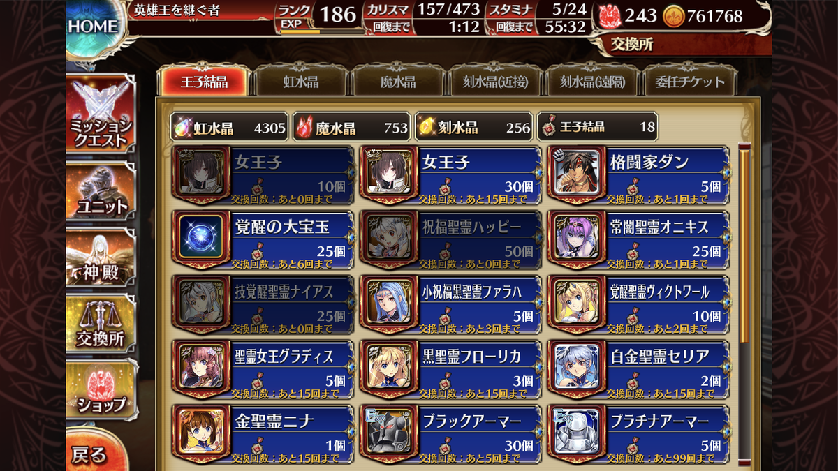 オーブが足りないな・・・。オーブは曜日別で交換は無しか。めんどいね・・・。
